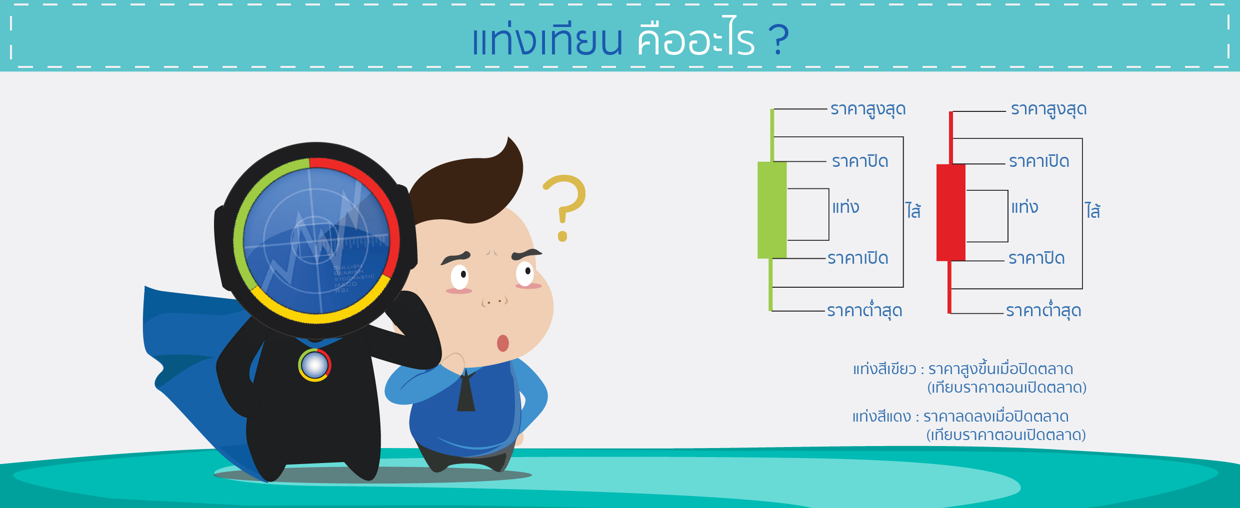 แท่งเทียน หรือ Candlestick เป็นการเอาราคา Open, High, Low, Close (OHLC) มาแสดงเป็นภาพ ให้พวกเราเข้าใจ และตีความราคาหุ้นได้ง่ายขึ้นครับ