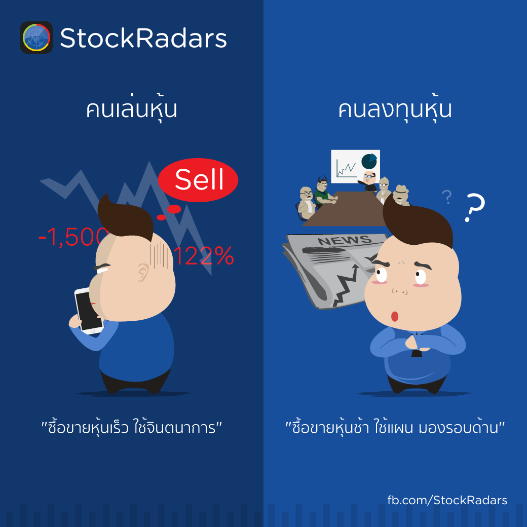 ก่อนอื่นต้องขอออกตัวก่อน ว่าบทความนี้ไม่ได้หมายความว่าทำแบบไหนผิด แบบไหนถูกนะ เป็นเพียงแค่การยกตัวอย่างพฤติกรรมบางอย่างที่แตกต่างกันระหว่าง “คนเล่นหุ้น” กับ “คนลงทุนหุ้น”
