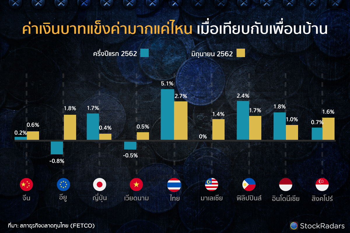 - ผลกระทบจากการสงครามการค้าระหว่างจีนกับสหรัฐ เริ่มส่งให้เศรษฐกิจโลกมีการชะลอตัว และย่อมหลีกเลี่ยงไม่ได้ที่การส่งออกไทยซึ่งเป็นรายได้หลักของประเทศย่อมได้รับผลกระทบไปด้วย