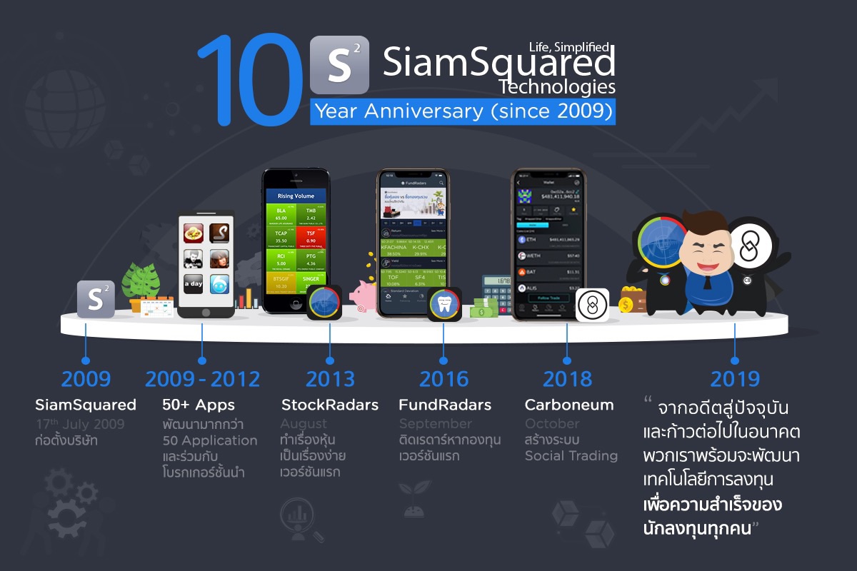 ก้าวสู่ปีที่ 10 บริษัท สยามสแควร์ เทคโนโลยี (ประเทศไทย) จำกัด จากจุดเริ่มต้นเมื่อ 10 ปีที่แล้วในวันที่ 17 ก.ค. ปี ค.ศ. 2009 เราเปิดบริษัทด้วยความเชื่อในเทคโนโลยีที่จะเปลี่ยนโลกและทำให้ชีวิตคนง่ายขึ้น