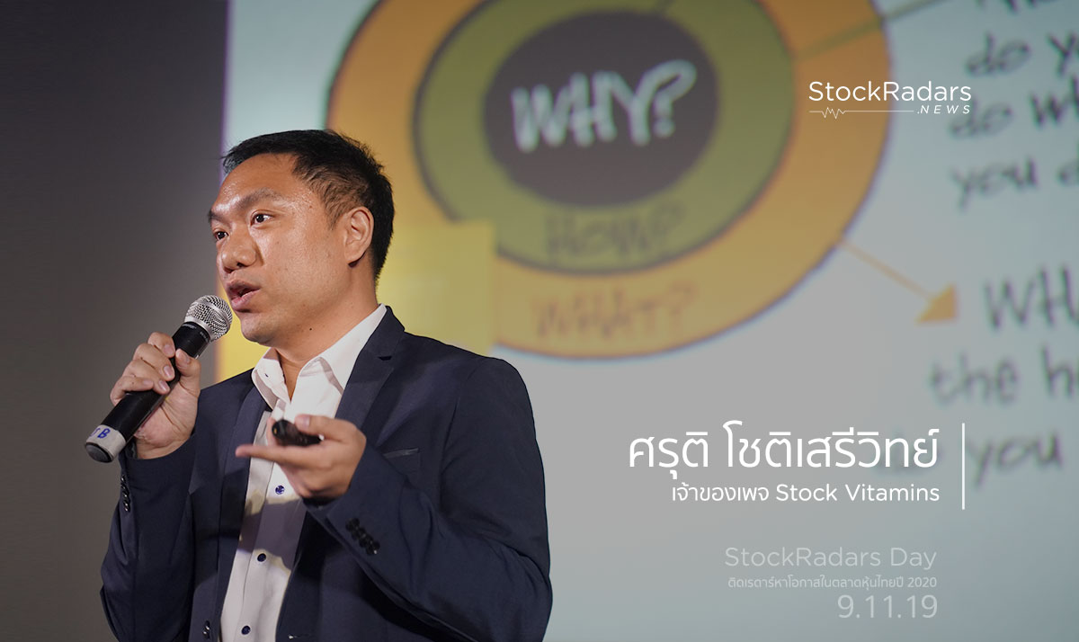 สำหรับ Speaker คนที่ 2 ที่ทีมงานจะมาเสนอรายละเอียดในงาน StockRadars Day 2019 “ติดเรดาร์หาโอกาสในตลาดหุ้นไทยปี 2020”คือ “ศรุติ โชติเสรีวิทย์” เจ้าของเพจ Stock Vitamin ที่จะมาช่วยเล่าประสบการณ์ในอดีตที่เคยลงทุนหุ้นเมื่อ 15 ปีก่อน แต่ก็ต้องผิดหวังกับตลาดหุ้นไป จนกระทั่งการกลับอีกครั้งจากการเตรียมความพร้อม ทำการบ้านอย่าขะมักเขม้นจนรู้ว่าตัวเองถนัดการลงทุนแบบไหน และมีเป้าหมายการลงทุนที่ชัดเจนว่าเพื่ออะไร ต้องการผลตอบแทนเฉลี่ยปีละเท่าไร จนปัจจุบันกลายเป็นอดีตมนุษย์เงินเดือนที่สามารถออกมาใช้ชีวิตในแบบที่ตัวเองต้องการ พร้อมกับมีเวลาให้ครอบครัว และที่สำคัญมีเวลาแลกเปลี่ยนและนำเสนอในสิ่งที่ตัวเองถนัดเพื่อบอกเล่าให้คนทั่วไปได้รับแรงบันดาลใจจากเขา กับห้วข้อ “เปิดสูตรการลงทุน จับคาแรกเตอร์หุ้นเติบโต”