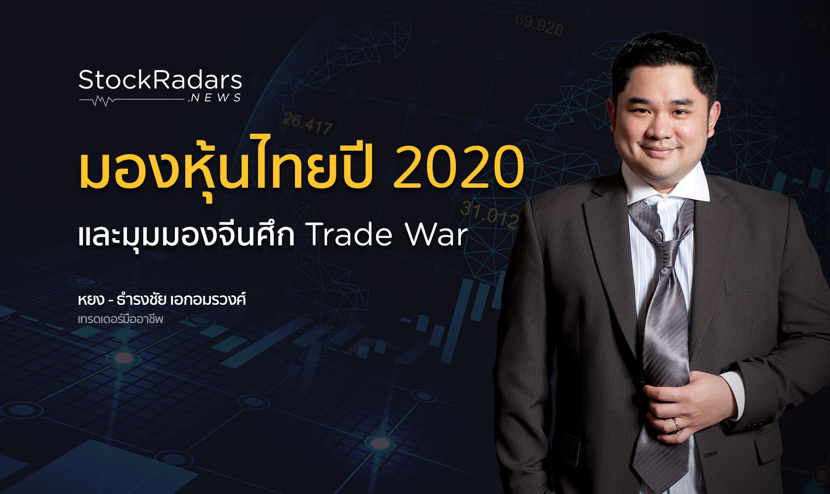 เป็นที่รู้จักกันอยู่แล้วสำหรับ “หยง-ธำรงชัย เอกอมรวงศ์” เทรดเดอร์มืออาชีพ ซึ่งที่ผ่านมาออกหนังสือแนะนำการลงทุน และเป็นวิทยากรแนะนำเรื่องการลงทุนมาอย่างต่อเนื่อง แต่ตอนนี้เขาขอเวลาไปอัพเดทและเปิดโลกการเรียนรู้ใหม่ที่เมืองกว่างโจว ประเทศจีน กันสักพัก เมื่อมีโอกาสได้พบเจอกันระหว่าง “หยง” กับ “แม็กซ์-ธีระชาติ ก่อตระกูล” ประธานเจ้าหน้าที่บริหาร StockRadars จึงได้แลกเปลี่ยนมุมมองกันทั้งเรื่องตลาดหุ้นไทยและมุมมองจีนต่อ Trade War ซึ่ง StockRadars.news นำมาเรียบเรียงให้