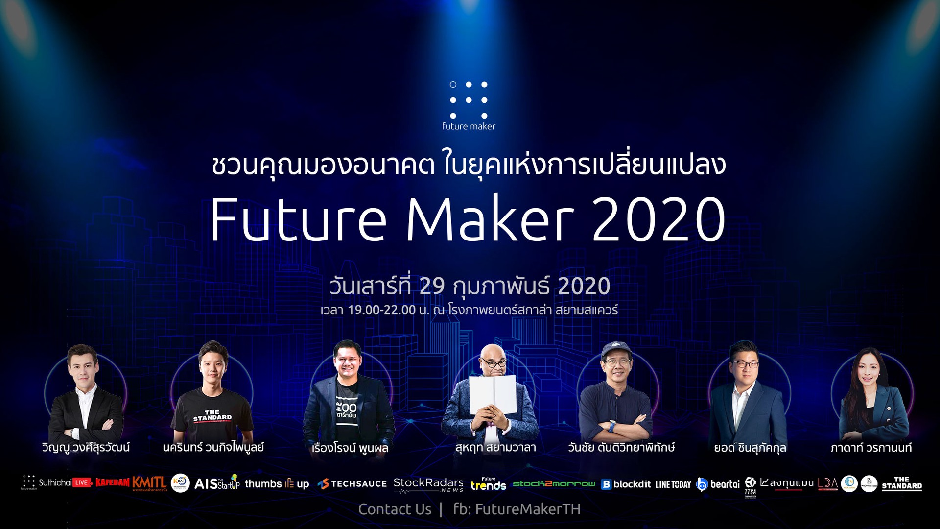 Future Maker ชวนคุณมาร่วมค้นหาแนวทางและสร้างโอกาสใหม่ๆ พร้อมวิธีรับมือความเสี่ยงในโลกที่เปลี่ยนแปลงอยู่ตลอดเวลา เพื่อพัฒนาทักษะจำเป็นในยุค Digital Disruption และร่วมทำนายอนาคตประเทศไทยในปี 2020 นี้ไปด้วยกัน