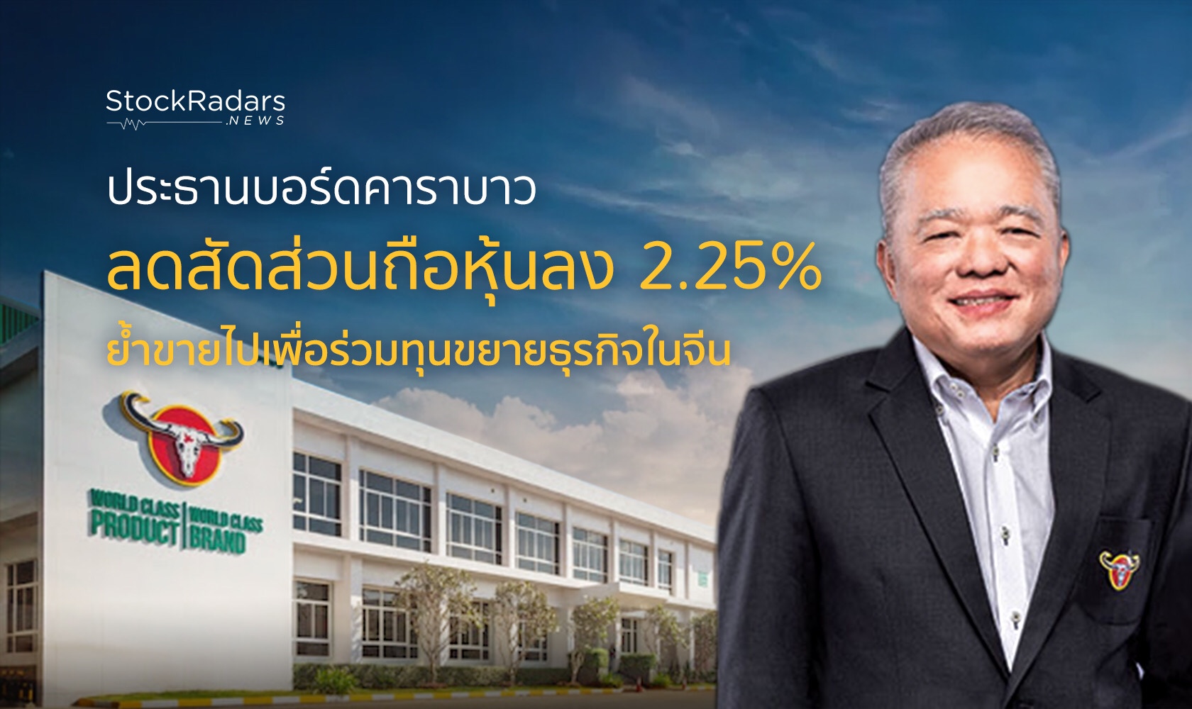 ประธานบอร์ด CBG ขายหนัก 22.5 ล้านหุ้น แจงเหตุผลนำไปลงทุนในบริษัทร่วมที่จีน