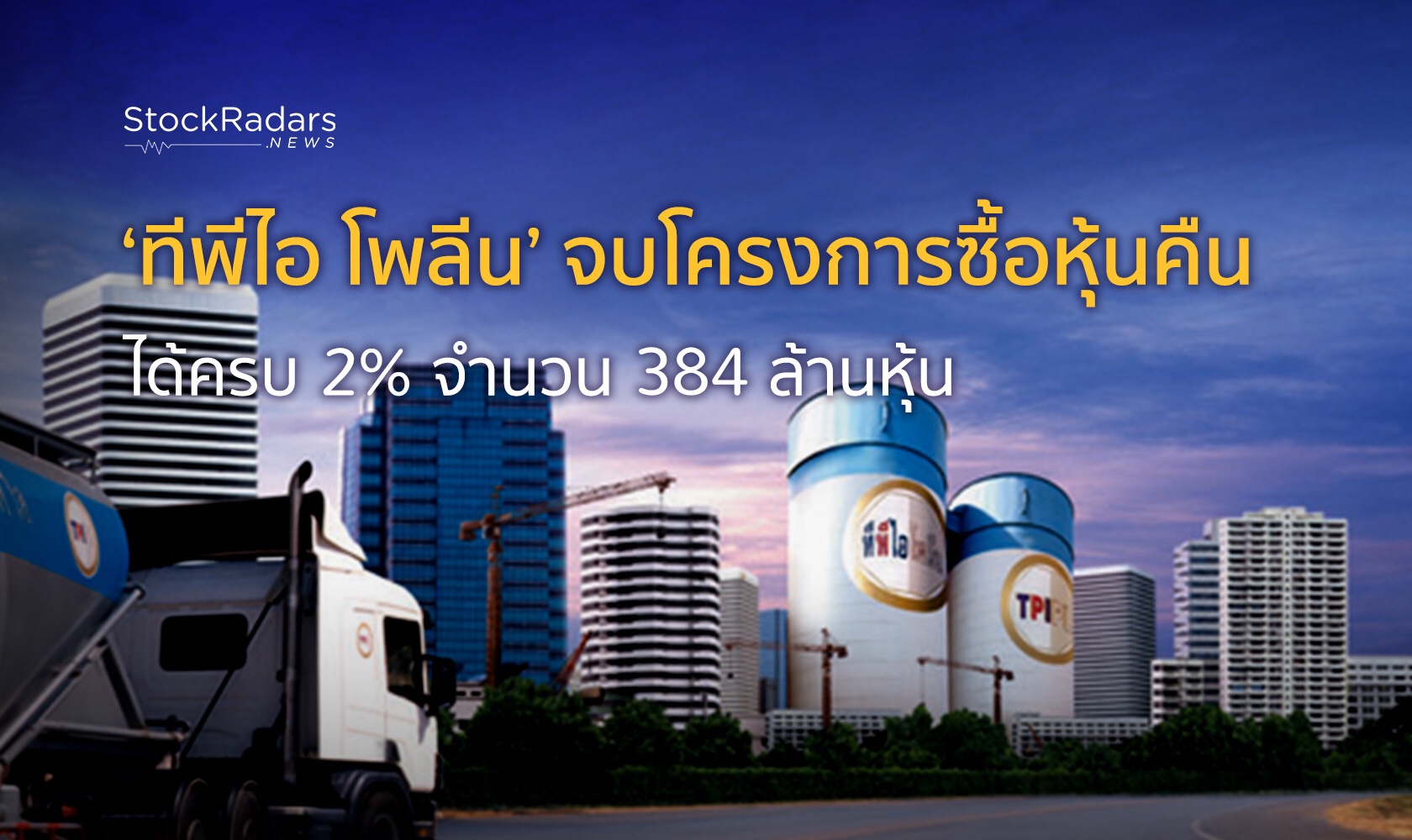 TPIPL จบโครงการซื้อหุ้นคืนแล้ว ได้ครบ 2% จำนวน 383.61 ล้านหุ้น จบโครงการเร็วกว่าที่คาด