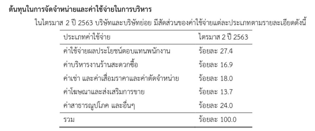 นอกจากนี้ บริษัทได้ควบคุมการใช้จ่ายอย่างรัดกุม โดยต้นทุนในการจัดจำหน่ายและค่าใช้จ่ายในการบริหารเท่ากับ 26,015 ล้านบาท ลดลง 9.4%