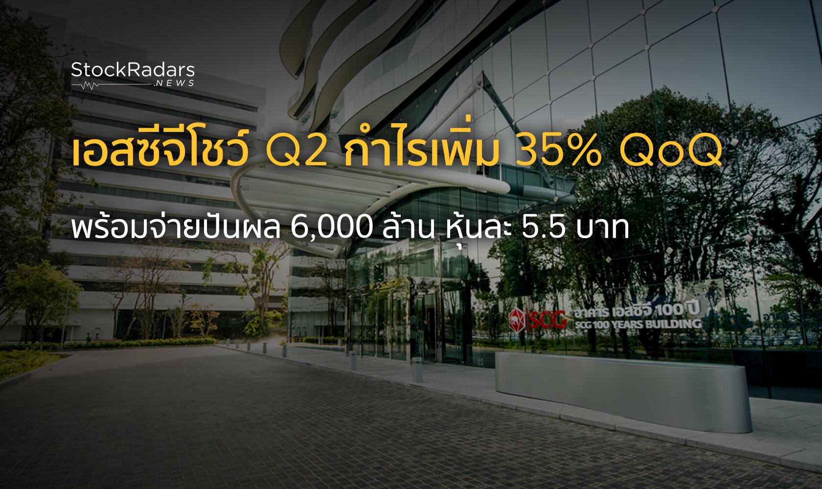 เอสซีจีโชว์ Q2 กำไรเพิ่ม 35% QoQ โดยหลักจากธุรกิจเคมิคอลส์ดีขึ้น พร้อมจ่ายปันผล 6,000 ล้านบาท ให้หุ้นละ 5.5 บาท