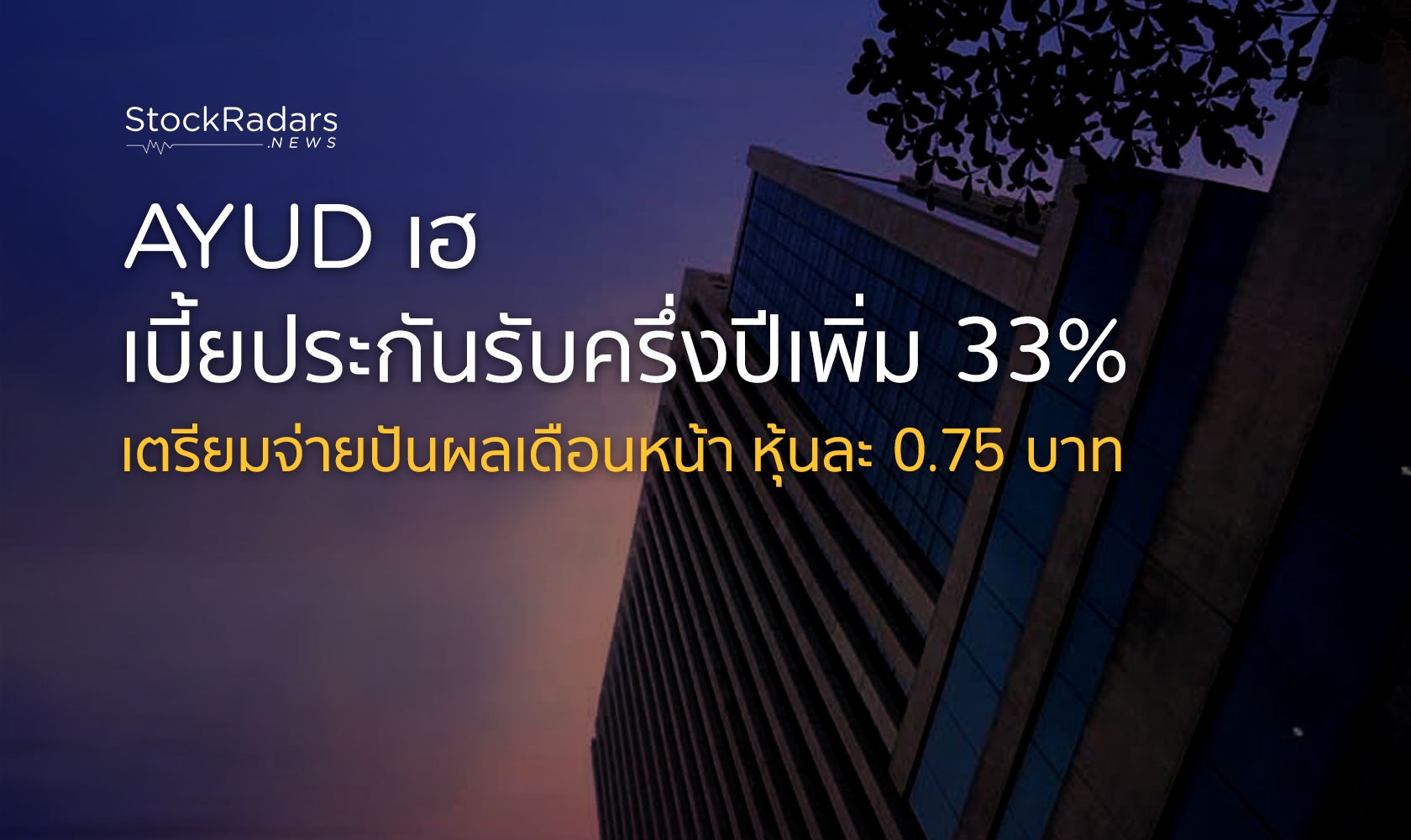 AYUD เฮเบี้ยประกันรับครึ่งปีเพิ่ม 33% เตรียมจ่ายปันผลจากกำไรสะสมในเดือนหน้า หุ้นละ 0.75 บาท