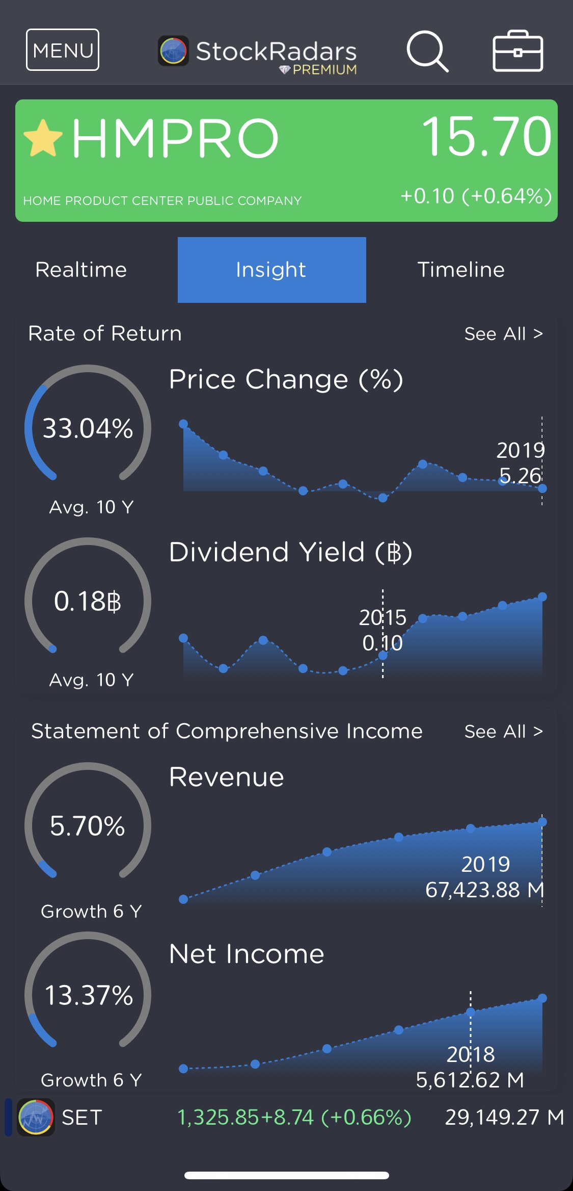 ข้อมูลจากแอพพลิเคชั่น StockRadars