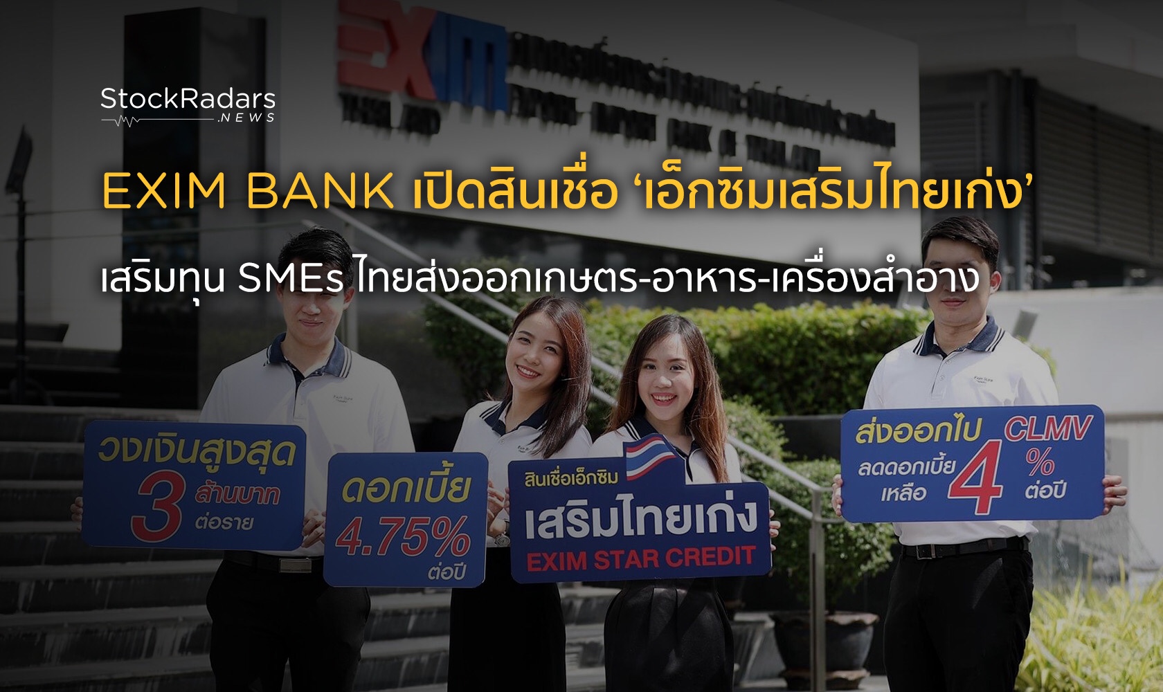 📌 EXIM BANK เปิดสินเชื่อ ‘เอ็กซิมเสริมไทยเก่ง’ เสริมทุน SMEs ไทยส่งออกเกษตร-อาหาร-เครื่องสำอาง ด้วยอัตราดอกเบี้ยหลายระดับ วงเงินสูงสุด 3 ล้านบาทต่อราย