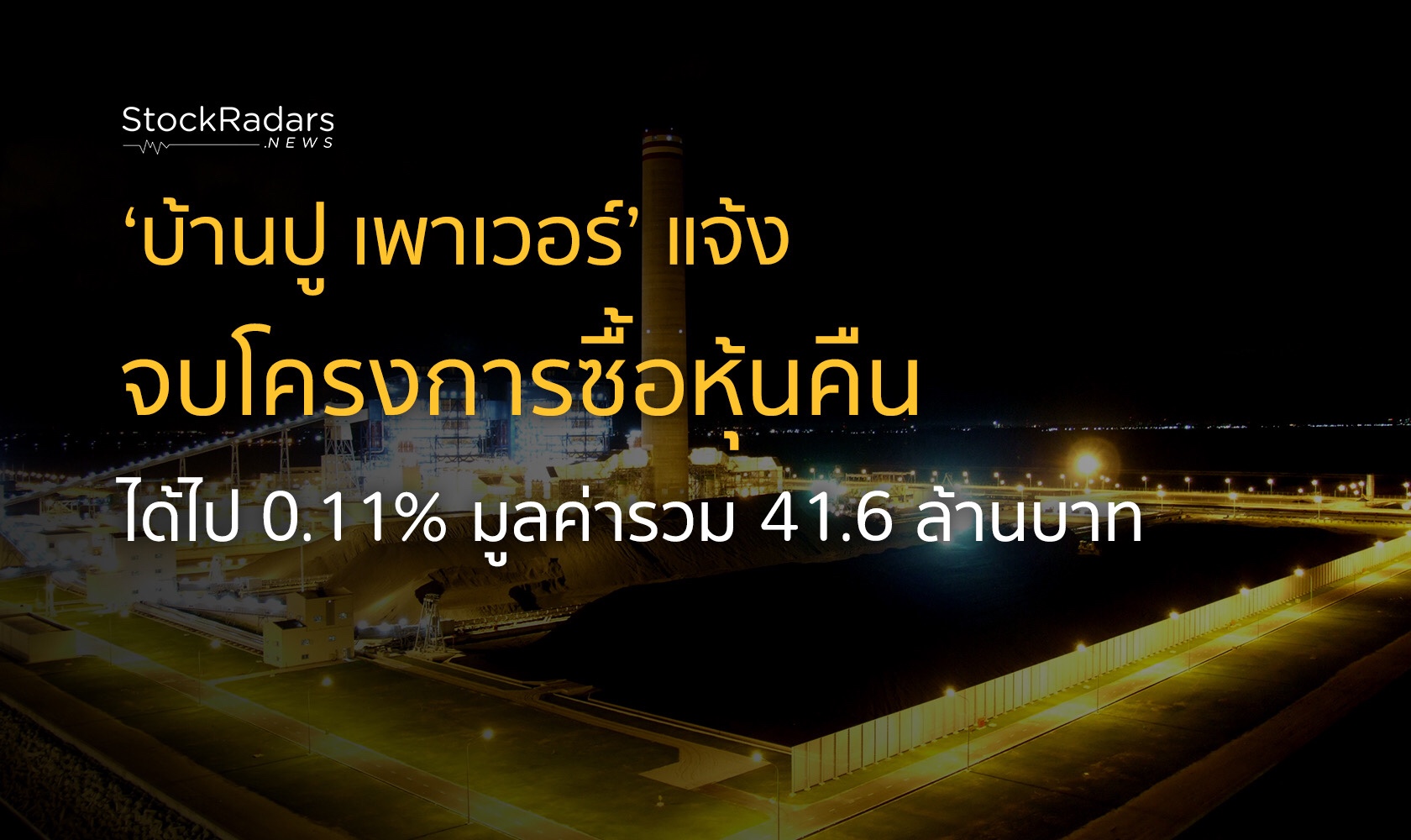 บริษัท บ้านปู เพาเวอร์ จำกัด (มหาชน) หรือ BPP ได้เผยแพร่เอกสารแจ้งการสิ้นสุดโครงการซื้อหุ้นคืน โดยระบุในวันที่ 4 ก.ย. 2563 บริษัทได้ดำเนินการซื้อหุ้นคืนรวมทั้งสิ้น 3,290,000 หุ้น คิดเป็น 0.11 % ของหุ้นที่จำหน่ายได้แล้วทั้งหมด รวมเป็นมูลค่าหุ้นที่ซื้อคืนทั้งสิ้น 41,646,580 บาท