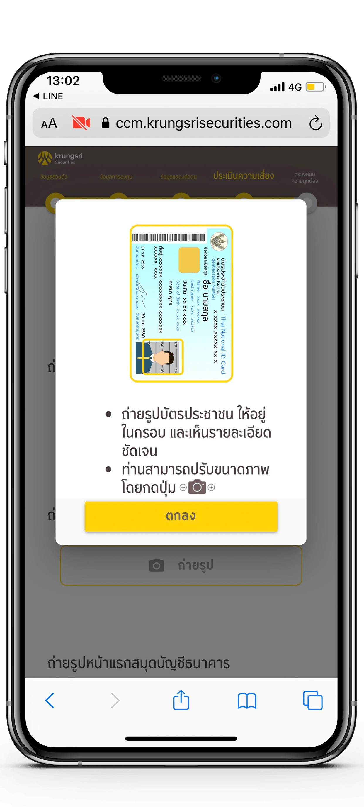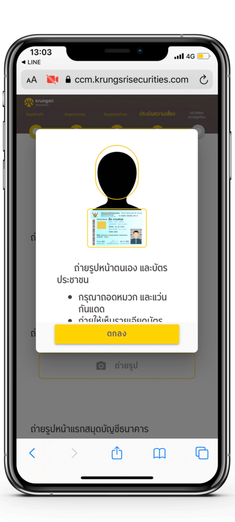 โดยในระหว่างทาง จะมีการถ่ายภาพประกอบคู่กับตัวจริงด้วย ซึ่งเมื่อเรียบร้อยแล้ว ข้อมูลจะถูกส่งตรงถึงหลักทรัพย์ กรุงศรี และหลังจากนั้นในวันทำการ จะมีทีมงานโทรหาคุณเพื่อยืนยันตัวตน และดำเนินการเปิดบัญชีให้สำเร็จ