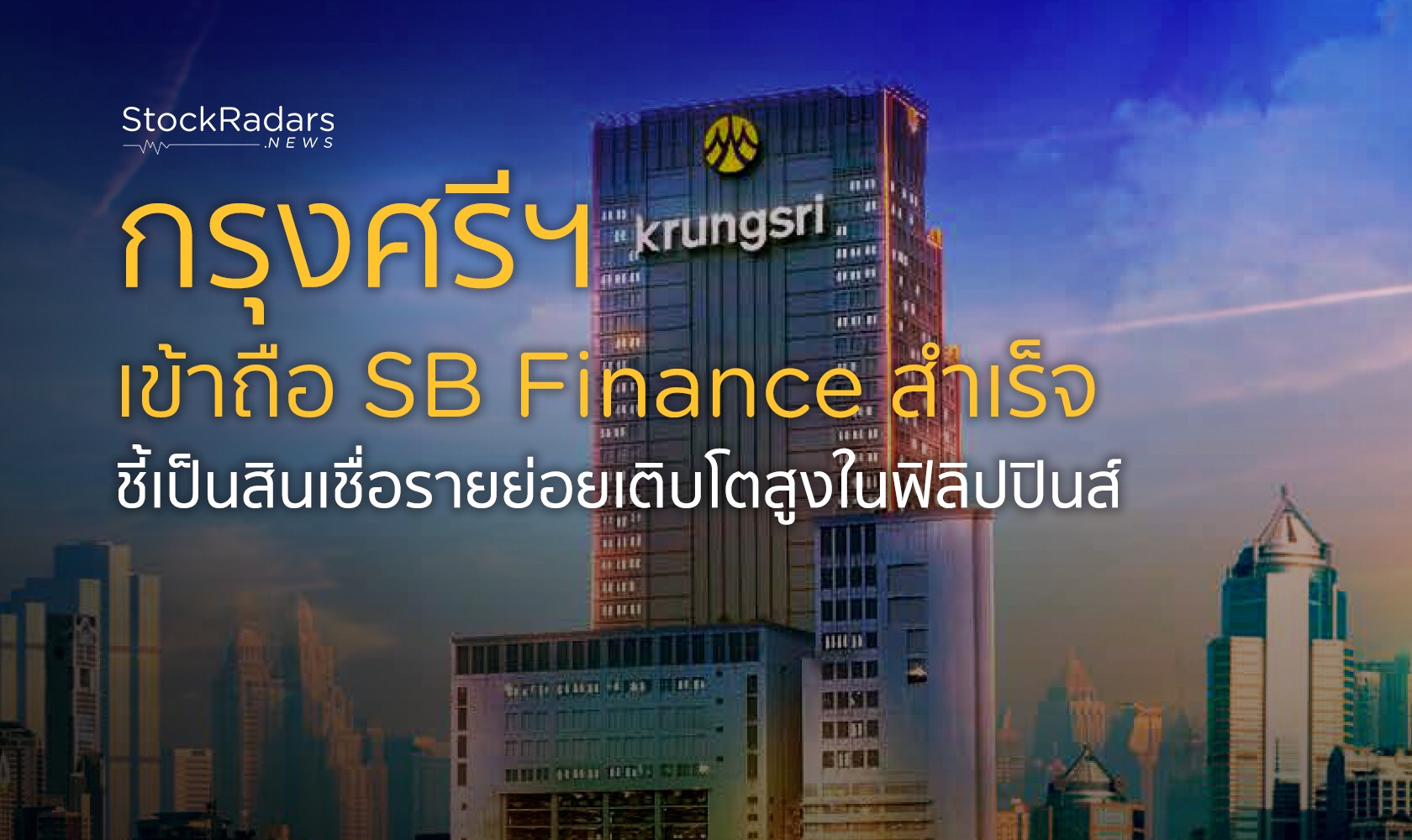 🏦 ธนาคารกรุงศรีฯ แจ้งความสำเร็จเข้าซื้อหุ้น 50% ในกิจการของ SB Finance Company Inc. แปลงเป็นบริษัทลูก พร้อมขยายธุรกิจสินเชื่อรายย่อยในตลาดฟิลิปปินส์