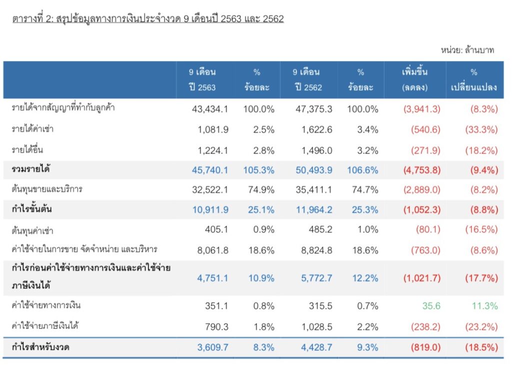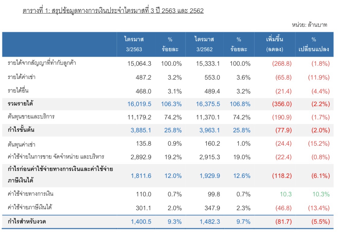👉🏻 โดยสรุปรายได้รวม Q3/2563 อยู่ที่ 16,019.5 ลบ. ลดลง 2.2% YoY จากกำลังซื้อผู้บริโภคลดลง ส่งผลให้ยอดขายสาขาเดิมลด