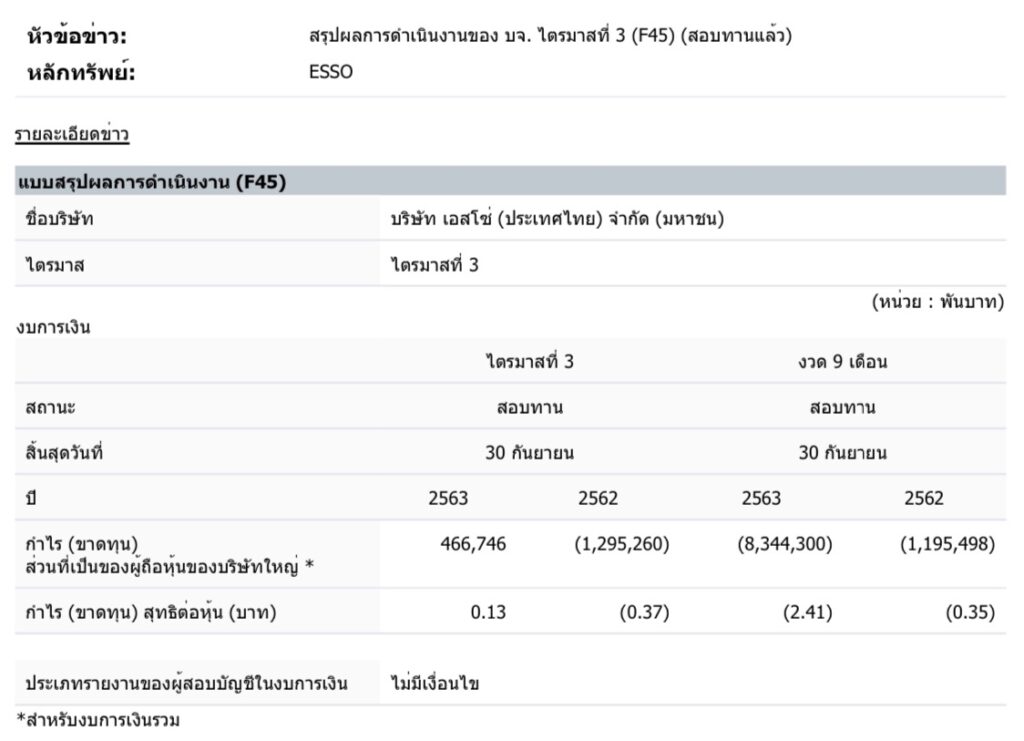 ⛽️ ESSO เผย 9 เดือนแรกขาดทุนอีก 8.3 พันลบ. จากช่วงเดียวกันของปีก่อนที่ 1.2 พันลบ.