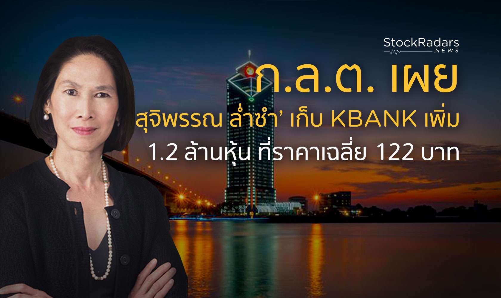 สำนักงานคณะกรรมการกำกับหลักทรัพย์และตลาดหลักทรัพย์ (ก.ล.ต.) ได้เปิดเผยรายงานการเปลี่ยนแปลงการถือหลักทรัพย์และสัญญาซื้อขายล่วงหน้าของผู้บริหาร (แบบ 59) ระบุถึงการซื้อหุ้นสามัญของธนาคารกสิกรไทย จำกัด (มหาชน) หรือ KBANK โดย นางสุจิตพรรณ ล่ำซำ รองประธานกรรมการบริษัท ทำรายการในวันที่ 8 ธ.ค. 2563 ผ่านการซื้อขายในกระดาน จำนวน 1,200,000 หุ้น ที่ราคาเฉลี่ยหุ้นละ 122.00 บาท โดยจากเดิมมีจำนวนหุ้นสามัญอยู่ที่ 1,800,000 หุ้น ทำให้ล่าสุดถือรวมทั้งสิ้น 3,000,000 หุ้น