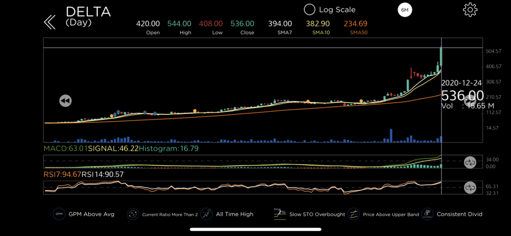 เช่นในวันนี้ (24 ธ.ค. 63) ราคา +116 บาท หรือ 27.62% ปิดสิ้นวันที่ 536 บาท นั่นคือเพียงแค่ 10 บาท ราคาก็จะแตะซิลลิ่งที่ตลาดกำหนดไว้แล้ว