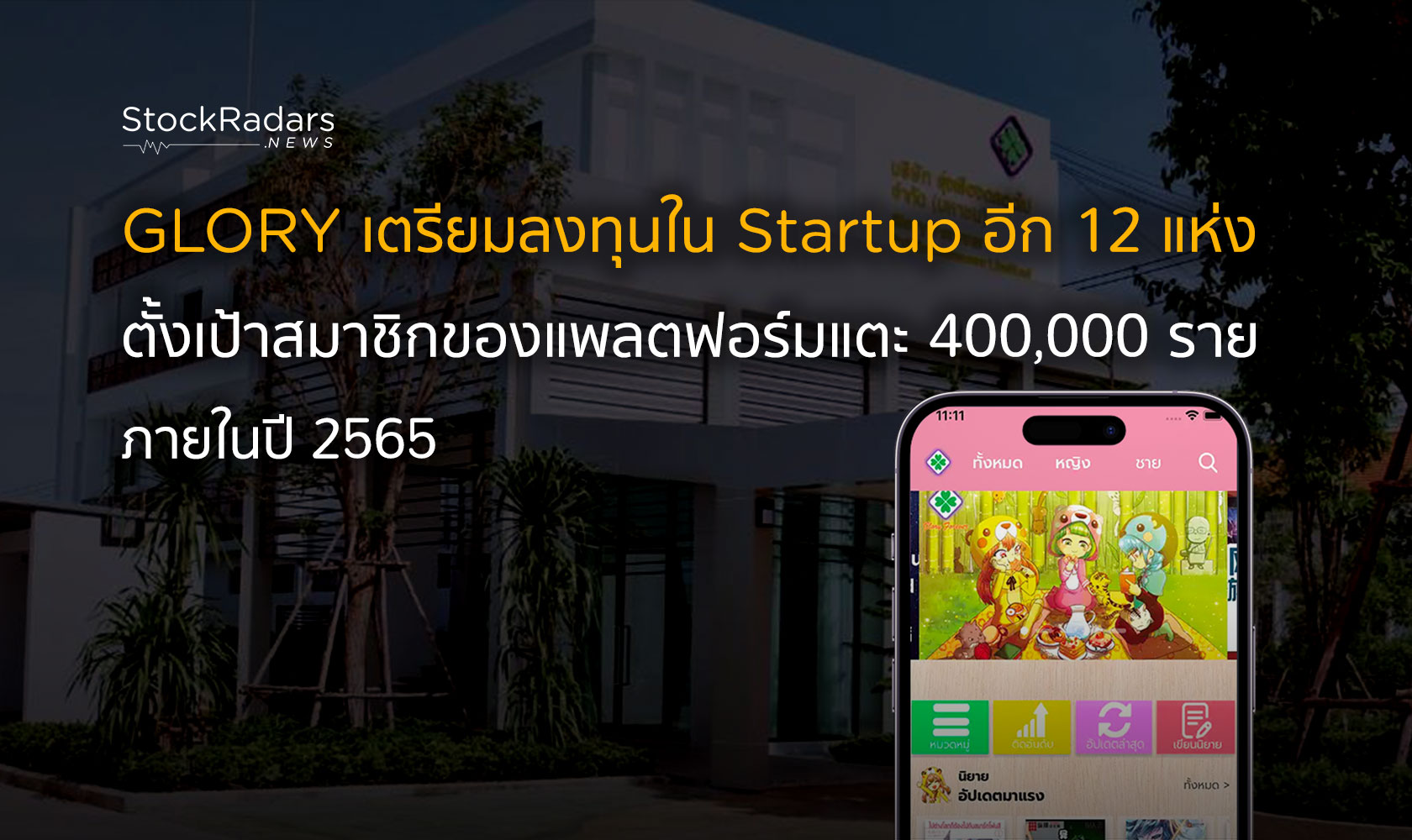 GLORY เตรียมลงทุนใน Startup อีก 12 แห่ง ตั้งเป้าสมาชิกของแพลตฟอร์มแตะ 400,000 ราย ภายในปี 2565