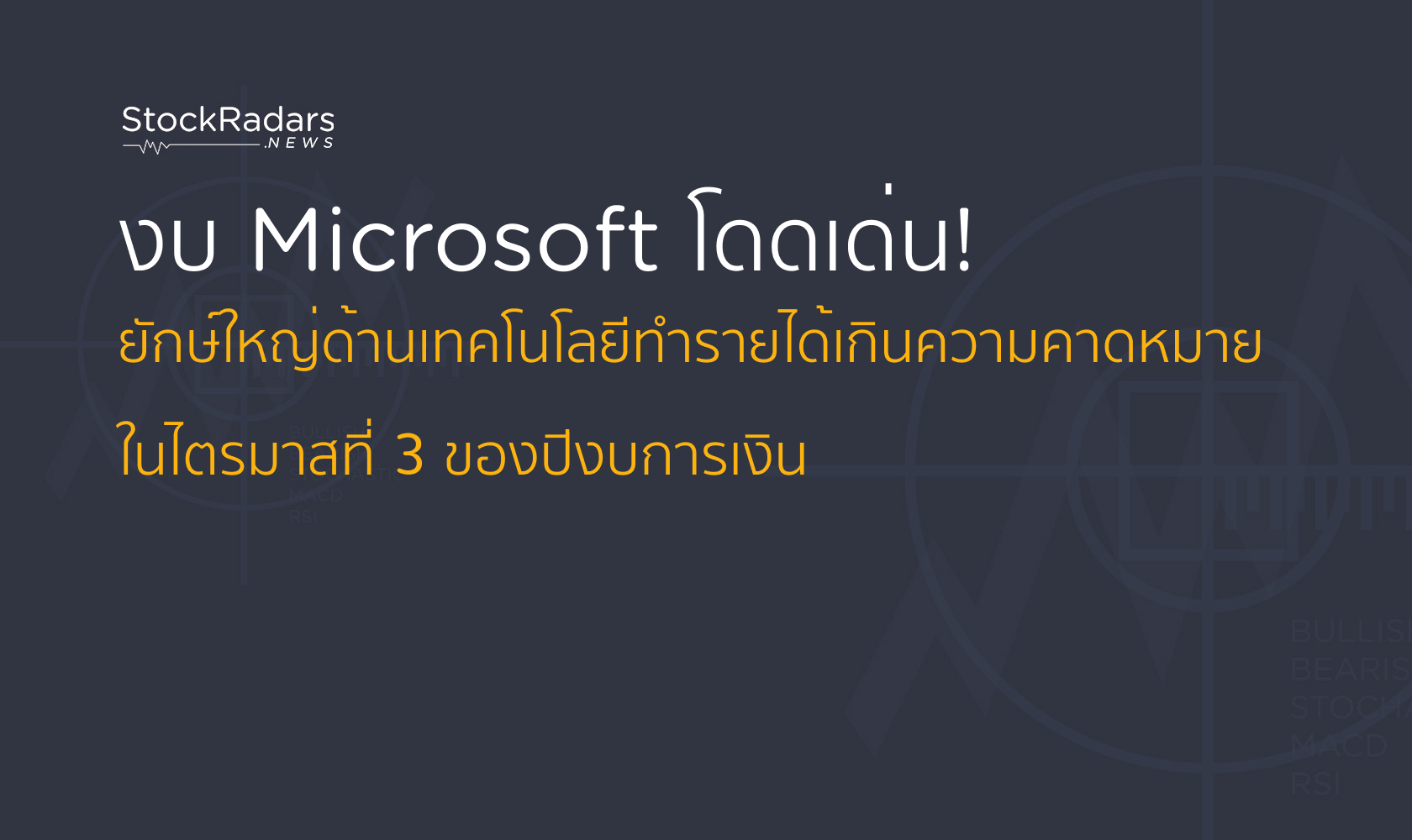 Microsoft หรือ MSFT ได้เปิดเผยงบการเงินในไตรมาสที่สามในวันที่ 25 เมษายน 2566 ที่ผ่านมา โดยมีรายรับอยู่ที่ 52.9 พันล้านดอลลาร์ในไตรมาสที่สามของปีงบการเงิน เพิ่มขึ้น 7% จากปีที่แล้ว และมีกำไรอยู่ที่ 1.83 หมื่นล้านดอลลาร์ เพิ่มขึ้นถึง 9% จากปีที่ผ่านมา