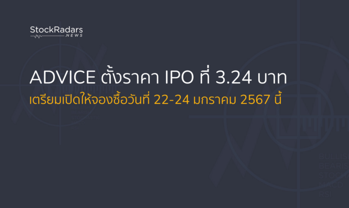 ADVICE ตั้งราคา IPO ที่ 3.24 บาท เตรียมเปิดให้จองซื้อวันที่ 22-24 มกราคม 2567 นี้
