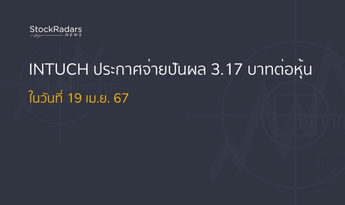 บริษัท อินทัช โฮลดิ้งส์ (INTUCH) ได้ประกาศมติที่ประชุมสามัญผู้ถือหุ้นประจำปี 2567 โดยมีมติอนุมัติจ่ายปันผลจากผลการดำเนินงานประจำปี 2566 เป็นเงิน 3.17 บาทต่อหุ้น รวมเป็นเงินประมาณ 10,165 ล้านบาท โดยจะจ่ายปันผลในวันที่ 19 เมษายน 2567