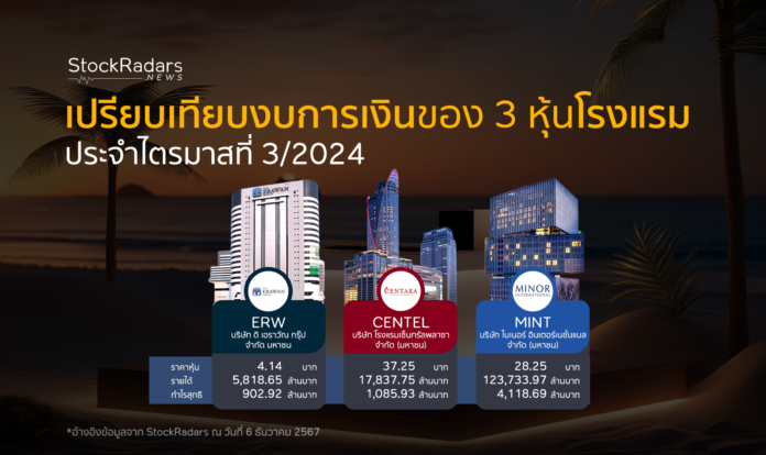 จากข้อมูลผลประกอบการไตรมาส 3 ปี 2024 หุ้นกลุ่มโรงแรมหลายบริษัทมีผลกำไรเติบโตดี โดยเฉพาะ MINT ที่มีรายได้และกำไรสุทธิสูงที่สุดในกลุ่ม