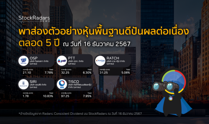 *อ้างอิงข้อมูลจาก Radars: Consistent Dividend บน StockRadars ณ วันที่ 16 ธันวาคม 2567