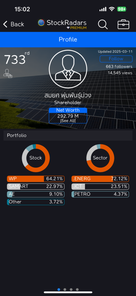 สำหรับผู้ที่ต้องการติดตามความเคลื่อนไหวของนักลงทุนรายใหญ่ สามารถดูรายละเอียดเพิ่มเติมได้ใน ฟีเจอร์ Top Shareholders บน StockRadars