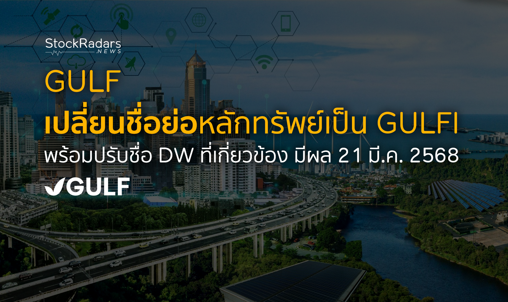 ตลาดหลักทรัพย์แห่งประเทศไทย ประกาศ เปลี่ยนชื่อย่อหลักทรัพย์ของ บริษัท กัลฟ์ เอ็นเนอร์จี ดีเวลลอปเมนท์ จำกัด (มหาชน) หรือ GULF เป็น GULFI มีผลตั้งแต่วันที่ 21 มีนาคม 2568 เป็นต้นไป