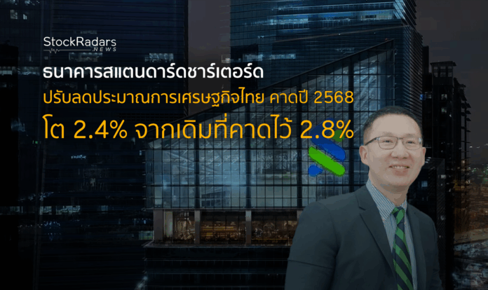 ธนาคารสแตนดาร์ดชาร์เตอร์ด ปรับลดประมาณการการเติบโตของเศรษฐกิจไทย โดยคาดว่าในปี 2568 เศรษฐกิจไทยจะเติบโต 2.4% จากเดิมที่คาดไว้ 2.8% และคาดว่า กนง. และธนาคารแห่งประเทศไทย จะลดอัตราดอกเบี้ยนโยบายลงร้อยละ 0.25 ในการประชุมเดือนเมษายนนี้