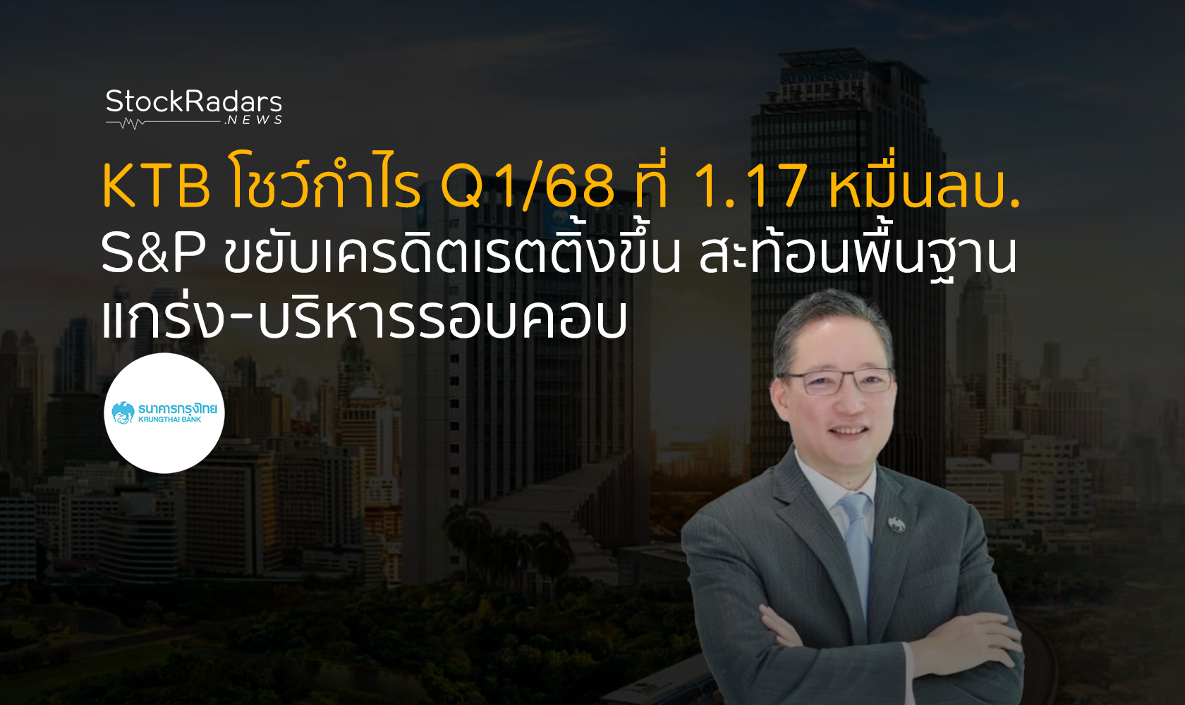KTB โชว์กำไร Q1/68 ที่ 1.17 หมื่นลบ. S&P ขยับเครดิตเรตติ้งขึ้น สะท้อนพื้นฐานแกร่ง-บริหารรอบคอบ
