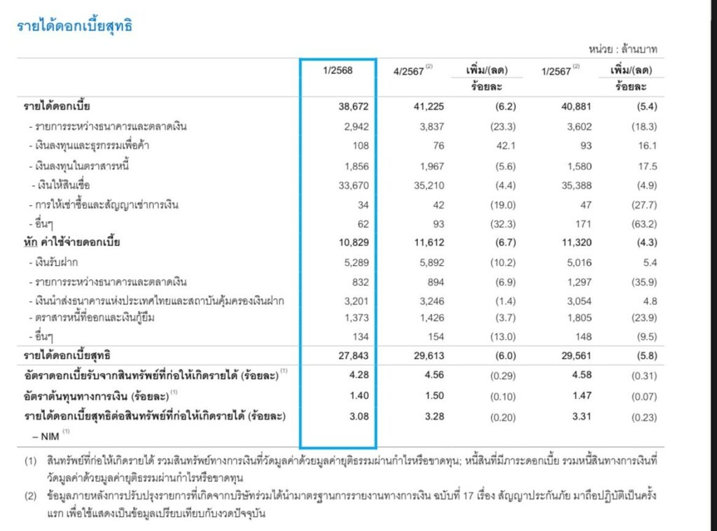 เมื่อเทียบกับไตรมาส 1 ปี 2567 กำไรสุทธิส่วนที่เป็นของธนาคารเติบโตขึ้นเล็กน้อย จากการขยายตัวของรายได้ผลิตภัณฑ์บริหารความเสี่ยงทางการเงิน การลงทุน และกำไรจากเงินลงทุน