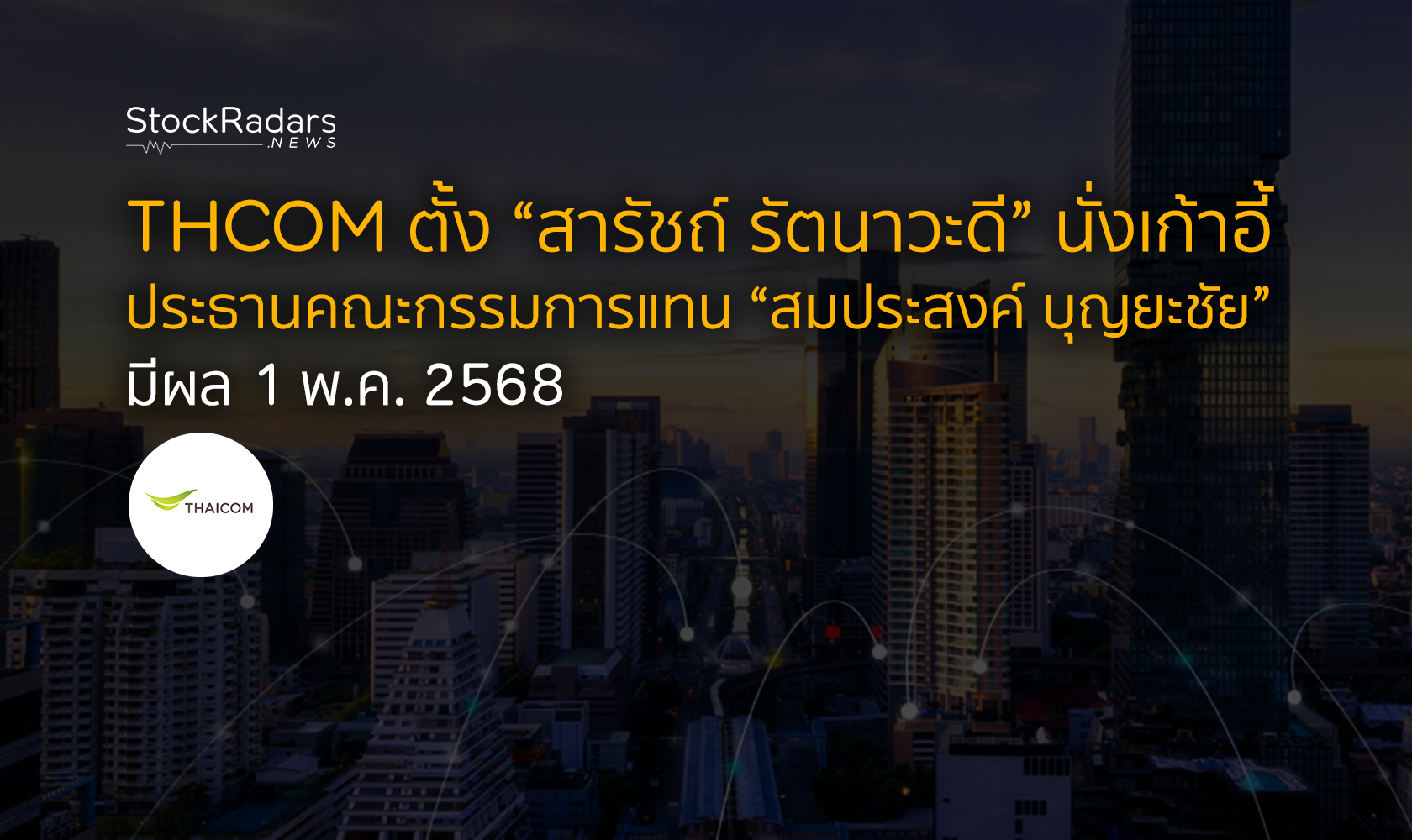 THCOM ตั้ง “สารัชถ์ รัตนาวะดี” นั่งเก้าอี้ประธานคณะกรรมการ แทน “สมประสงค์ บุญยะชัย” มีผล 1 พ.ค. 2568