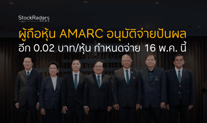 ผู้ถือหุ้น AMARC อนุมัติจ่ายปันผลอีก 0.02 บาท/หุ้น สำหรับผลการดำเนินงานงวดปี 2567 กำหนดจ่ายเงินปันผลในวันที่ 16 พฤษภาคม 2568