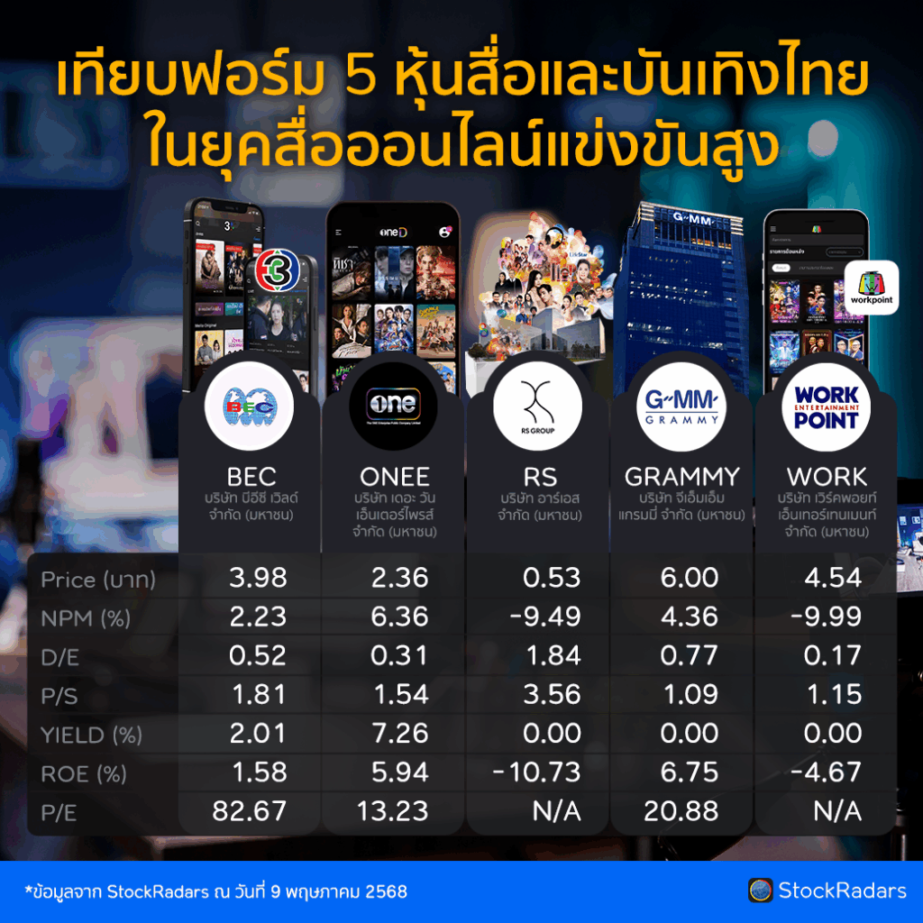 มาดูฟอร์มล่าสุดของ 5 หุ้นสื่อและบันเทิงกัน จากตัวเลขทางการเงินสำคัญสำหรับตัดสินใจก่อนลงทุนกัน!