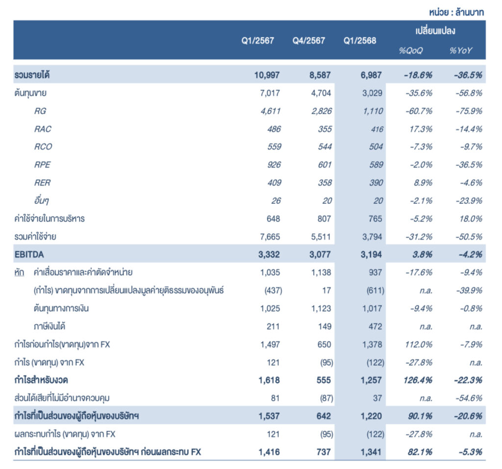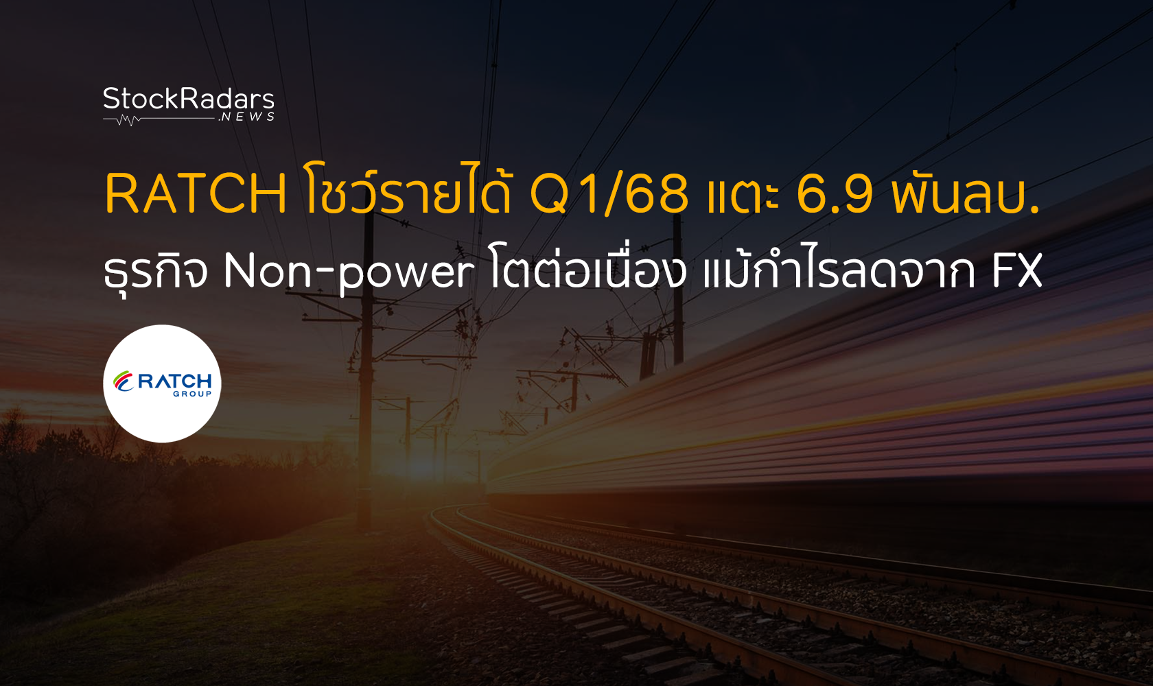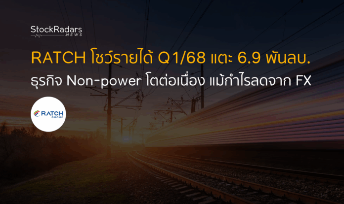 RATCH แจ้งกำไร Q1/68 อยู่ที่ 1,220 ลบ. ลดลง 20% YoY จากผลขาดทุน FX และรายได้โรงไฟฟ้าราชบุรีลดลงตามสัญญา แม้ส่วนแบ่งกำไรบริษัทร่วมโต 30% รายได้รวมอยู่ที่ 6,987 ลบ. หลักมาจากธุรกิจไฟฟ้า 94% ขณะที่ธุรกิจ Non-Power โตแตะ 440 ลบ.