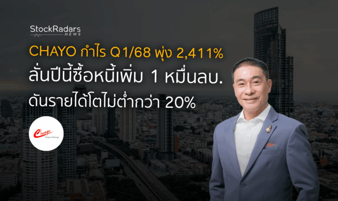 CHAYO เผยผลดำเนินงานไตรมาสแรกปี 2568 กำไรสุทธิส่วนของบริษัทใหญ่ 80.16 ล้านบาท พุ่งกว่า 2,400% จากช่วงเดียวกันของปีก่อน ขณะที่รายได้รวมแตะ 548.55 ล้านบาท เพิ่มขึ้น 11.23% รับแรงหนุนจากธุรกิจปล่อยสินเชื่อและบริการจัดหาคน ด้านผู้บริหาร “สุขสันต์ ยศะสินธุ์” มั่นใจแนวโน้มทั้งปีโตไม่ต่ำกว่า 20% พร้อมเดินหน้าซื้อหนี้เพิ่มตามเป้าหมาย 10,000 ล้านบาท หลังตุนเข้าพอร์ตแล้วกว่า 970 ล้านบาทในไตรมาสแรก