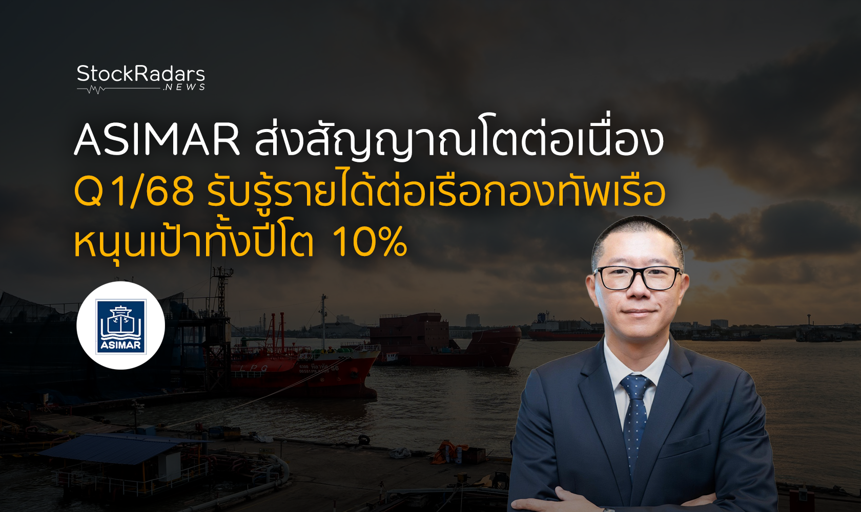 นายสุรเดช ตัณฑ์ไพบูลย์ ประธานเจ้าหน้าที่บริหาร บริษัท เอเชียน มารีน เซอร์วิสส์ จำกัด (มหาชน) หรือ ASIMAR เปิดเผยว่าผลประกอบการไตรมาส 1 ปี 2568 มีรายได้รวม 223.04 ล้านบาท เพิ่มขึ้น 52.11 ล้านบาท หรือ 30.49% เป็นรายได้งานซ่อมเรือ 123.80 ล้านบาท เพิ่มขึ้น 0.70 ล้านบาท หรือ 0.57% เมื่อเทียบกับไตรมาส 1/2567 รายได้หลักจากเรือบรรทุกสินค้าเหลว (Liquid cargo) และเรือบรรทุกก๊าซปิโตรเลียมเหลว (LPG Carrier) ซึ่งส่วนใหญ่เป็นกลุ่มพลังงาน