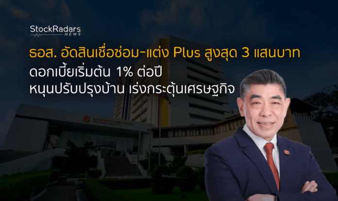 ธอส. เดินหน้ากระตุ้นเศรษฐกิจ ปล่อยสินเชื่อซ่อม – แต่ง Plus วงเงินกู้รวมสูงสุดรายละ 300,000 บาท ดอกเบี้ยเริ่มต้นเพียง 1.00% ต่อปี รองรับความต้องการปรับปรุง ต่อเติม เปลี่ยนเฟอร์นิเจอร์ เครื่องใช้ไฟฟ้า และอุปกรณ์ในบ้าน ตอบโจทย์ผู้กู้ยุคใหม่ เพิ่มคุณภาพชีวิต พร้อมขับเคลื่อนเม็ดเงินเข้าสู่ระบบเศรษฐกิจ