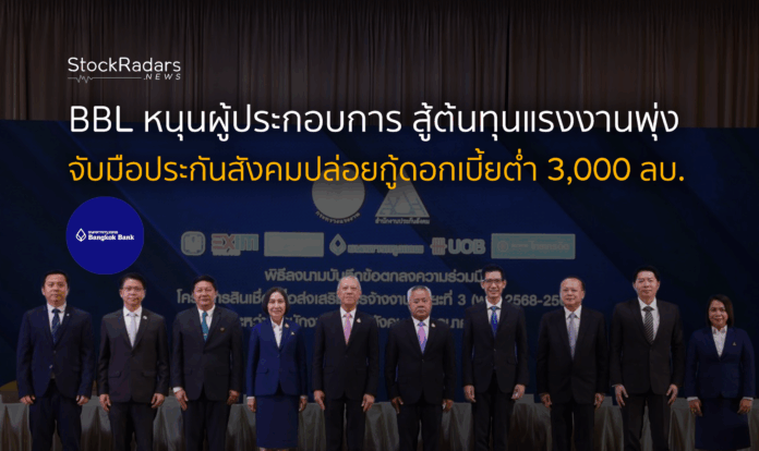 ธนาคารกรุงเทพ ร่วมลงนาม MOU กับสำนักงานประกันสังคม เดินหน้าโครงการปล่อยสินเชื่อดอกเบี้ยต่ำ วงเงินรวม 3,000 ล้านบาท อัตราดอกเบี้ยคงที่ 2.35%-4.75% ต่อปี เพื่อช่วยเหลือผู้ประกอบการที่ได้รับผลกระทบจากต้นทุนค่าแรงที่ปรับสูงขึ้น โดยมีเงื่อนไขให้รักษาการจ้างงานไม่ต่ำกว่า 80% ของพนักงานเดิม สะท้อนบทบาท ‘เพื่อนคู่คิด มิตรคู่บ้าน’ ที่พร้อมเคียงข้างภาคธุรกิจและสังคมไทยในทุกสถานการณ์