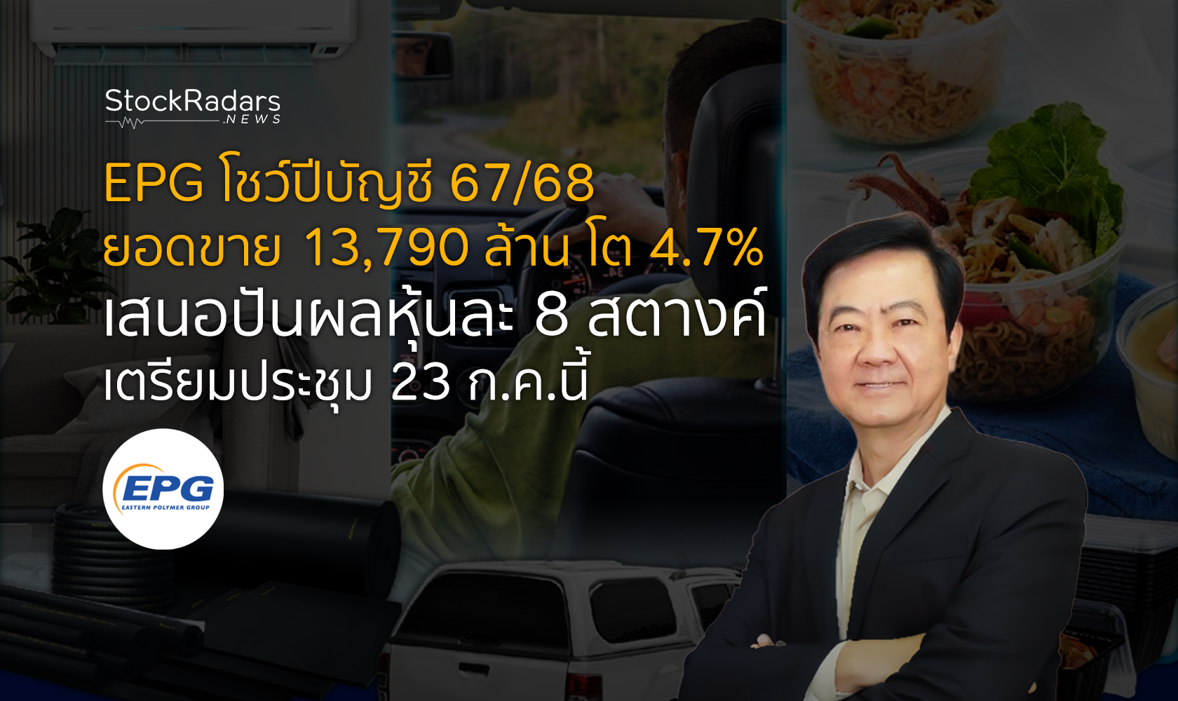 ดร.เฉลียว วิทูรปกรณ์ รองประธานเจ้าหน้าที่บริหาร บริษัท อีสเทิร์นโพลีเมอร์ กรุ๊ป จำกัด (มหาชน) หรือ EPG ผู้ผลิตและจำหน่ายผลิตภัณฑ์โพลีเมอร์และพลาสติกแปรรูปชั้นนำของโลก เปิดเผยว่า ในปีบัญชี 67/68 (เม.ย. 67 – มี.ค. 68) บริษัทมียอดขาย 13,790 ล้านบาท ปรับตัวเพิ่มขึ้นจากปีก่อนที่มียอดขาย 13,170 ล้านบาท หรือเพิ่มขึ้น 4.7% มีอัตรากำไรขั้นต้นที่ 33.4% สูงกว่าเป้าหมายที่ตั้งไว้ที่ 30–33% และมีกำไรสุทธิที่ 808 ล้านบาท ลดลง 33.2% จากปีก่อน เนื่องจากความผันผวนจากอัตราแลกเปลี่ยนเงินตราต่างประเทศ บริษัทมีค่าใช้จ่ายสูงขึ้นทั้งจากธุรกิจฉนวนกันความร้อน/เย็น และธุรกิจชิ้นส่วนอุปกรณ์ตกแต่งยานยนต์ อีกทั้งมีการตั้งสำรองผลขาดทุนทางเครดิตที่คาดว่าจะเกิดขึ้นที่ 324 ล้านบาท และมีส่วนแบ่งกำไรจากเงินลงทุนในบริษัทร่วมและการร่วมค้าลดลง 39.6%