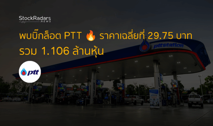 พบบิ๊กล็อต PTT 🔥 ราคาเฉลี่ยที่ 29.75 บาท รวม 1.106 ล้านหุ้น ล่าสุด (10 มิ.ย. 2568 ณ เวลา 15.33 น.) ตลาดหลักทรัพย์ฯ รายงานการซื้อขายรายการใหญ่ (Big Lot) ของหุ้นบ บริษัท ปตท. จำกัด (มหาชน) หรือ PTT จำนวน 1,106,000 หุ้น ที่ราคาเฉลี่ย 29.75 บาทต่อหุ้น รวมมูลค่า 32,903,500.00 บาท Share this: Share on Facebook (Opens in new window) Facebook Share on X (Opens in new window) X