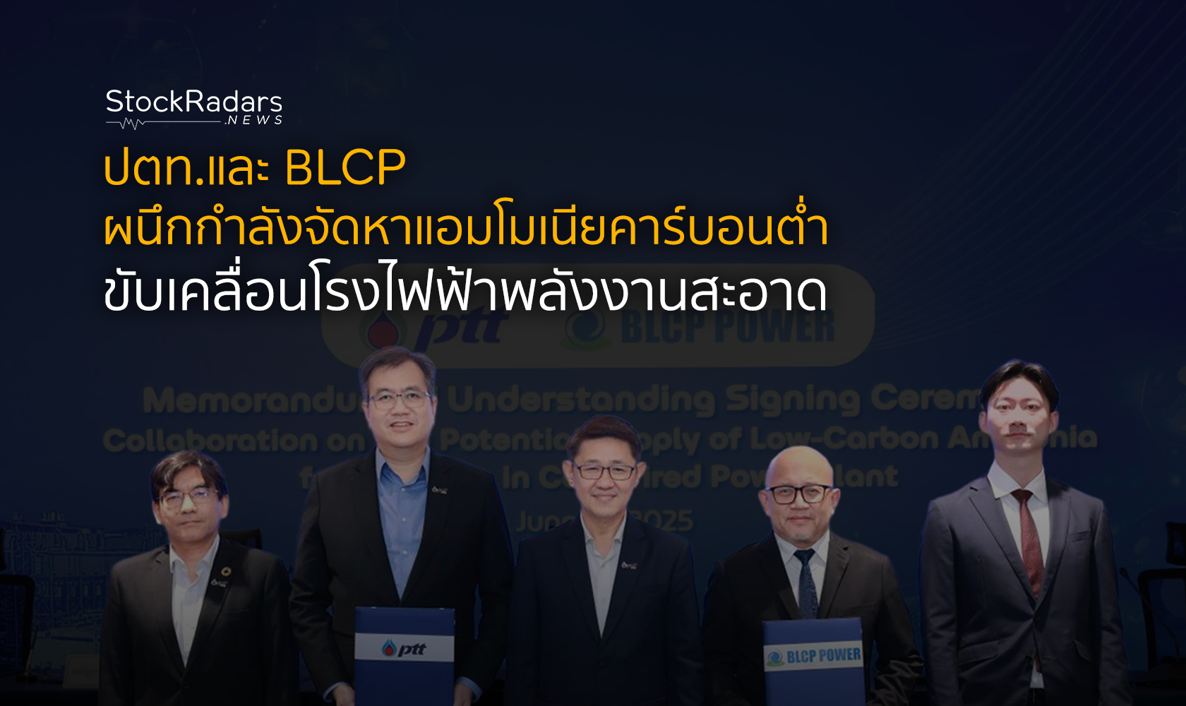 ปตท. และ BLCP ลงนามบันทึกความร่วมมือ เดินหน้าศึกษาและจัดหาแอมโมเนียคาร์บอนต่ำเพื่อใช้เป็นเชื้อเพลิงในโรงไฟฟ้า ยกระดับความร่วมมือจากการศึกษาเบื้องต้นสู่การพัฒนาเชิงพาณิชย์ โดยใช้โครงสร้างพื้นฐานของกลุ่ม ปตท. หนุนการลดการปล่อยก๊าซเรือนกระจก และสร้างความมั่นคงทางพลังงานระยะยาว