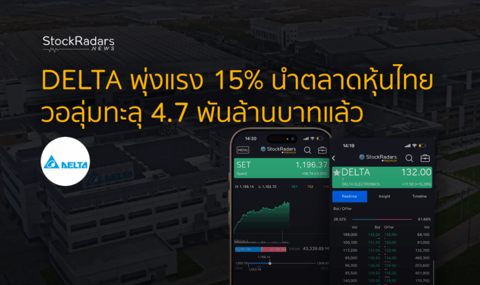 DELTA พุ่งแรง 15% นำตลาดหุ้นไทย วอลุ่มทะลุ 4.7 พันล้านบาทแล้ว DELTA แรงไม่หยุด พุ่งแตะ 132.00 บาท บวก 17.50 บาท หรือ +15.28% นำทัพหุ้นขนาดใหญ่ดันดัชนี SET พุ่งทะลุ 1,190 จุดในช่วงบ่าย โดยมีมูลค่าการซื้อขายเฉพาะ DELTA ล่าสุดทะลุ 4,700 ล้านบาท สะท้อนแรงเก็งกำไรในวันนี้ Share this: Share on Facebook (Opens in new window) Facebook Share on X (Opens in new window) X