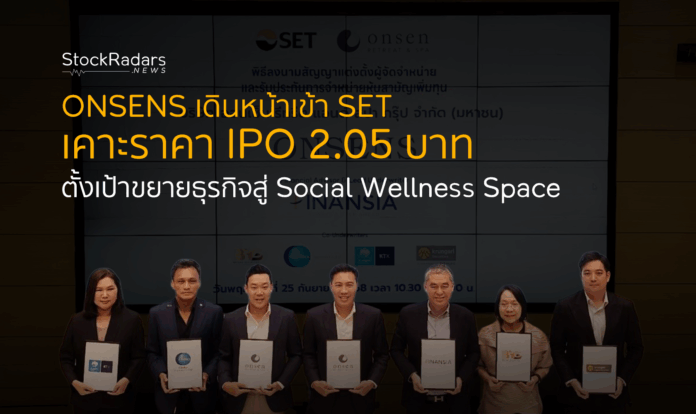 บริษัท ออนเซ็น รีทรีต แอนด์ สปา กรุ๊ป จำกัด (มหาชน) หรือ ONSENS ผู้ให้บริการออนเซ็นและสปาครบวงจรชั้นนำของไทย เตรียมเสนอขายหุ้นสามัญเพิ่มทุนต่อประชาชนเป็นครั้งแรก (IPO) จำนวน 80 ล้านหุ้น ที่ราคา 2.05 บาทต่อหุ้น เปิดจองซื้อระหว่างวันที่ 29 – 30 กันยายน และ 1 ตุลาคม 2568 คาดเข้าซื้อขายในตลาดหลักทรัพย์แห่งประเทศไทย (SET) วันที่ 7 ตุลาคม 2568 ในหมวดการท่องเที่ยวและสันทนาการ (TOURISM) ภายใต้ชื่อย่อ “ONSENS” โดยมี บล. ฟินันเซีย ไซรัส (FSS) ทำหน้าที่ที่ปรึกษาทางการเงินและผู้จัดการการจัดจำหน่าย พร้อมผู้ร่วมจัดจำหน่ายอีก 4 ราย มั่นใจราคาขายสะท้อนพื้นฐานธุรกิจที่แข็งแกร่ง การเป็นผู้นำตลาดออนเซ็นและสปาสไตล์ญี่ปุ่นในไทย และศักยภาพเติบโตต่อเนื่องจากการลงทุนสร้าง Social Wellness Space แห่งใหม่ย่านทองหล่อ และการขยายแบรนด์พอร์ตโฟลิโอเพื่อรองรับเมกะเทรนด์สุขภาพในอนาคต