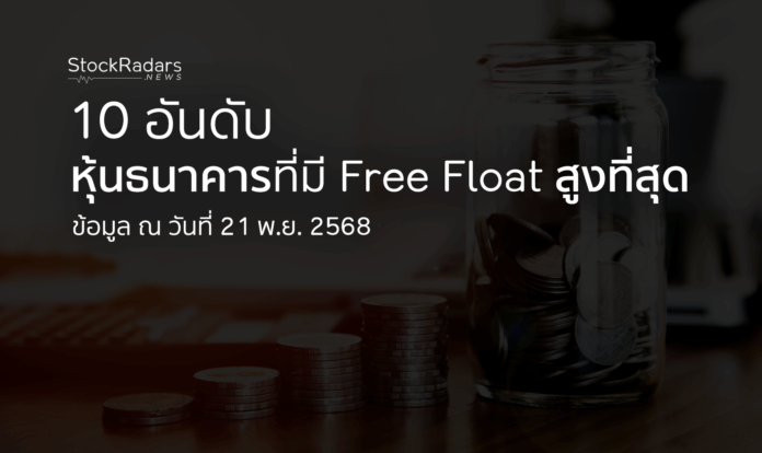 มาดูกันว่า 10 อันดับแรกของหุ้นกลุ่มธนาคารที่มีสัดส่วน Free Float สูงสุด ณ วันที่ 21 พ.ย. 2568 มีหุ้นธนาคารอะไรบ้างครับ