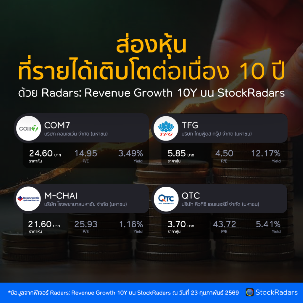 *ข้อมูลจากฟีเจอร์ Radars: Revenue Growth 10Y บน StockRadars ณ วันที่ 23 กุมภาพันธ์ 2569