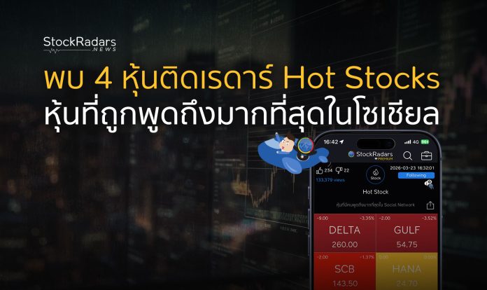 พบ 4 หุ้นติดเรดาร์ Hot Stocks หุ้นที่ถูกพูดถึงมากที่สุดในโซเชียล ณ วันที่ 23 มี.ค. 2569